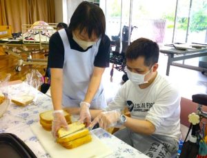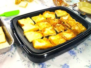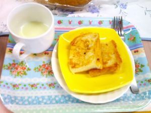夢の家デイサービス パン祭り🍞フレンチトーストクッキング🍳 2024年5月30日 夢の家 デイサービス 今日のパン祭りは 「フレンチトースト🍞」 まずはパンをカットして🔪 砂糖を入れたミルクに浸して バターで焼いていくよ🧈 美味しい香りにみんな うっとり😊 出来上がり~🍴 今日もみんな 大満足でしたよ😍