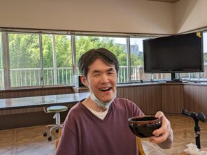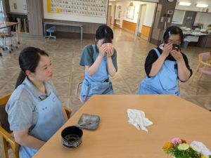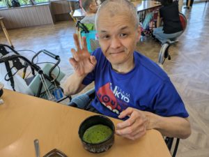 茶道クラブ🍵 2024年6月23日 夢の家 本日のお饅頭は【わたり鳥】です! お饅頭の上に鳥と葉の形の水ようかんが のっていて可愛いですね♡ 先生のお抹茶は最高だ! お饅頭の甘さとお茶のほろ苦さが良く合うね~ スタッフさんもほっと一息😌 皆さんの憩いの場となってます(❁´◡`❁)