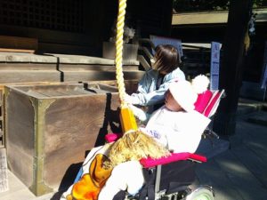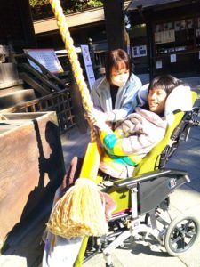 夢の家デイサービス 初詣外出⛩④ 2025年1月24日 夢の家 デイサービス 今日は初詣⛩ 内々神社に到着~🚌 お賽銭を入れたら 鈴を鳴らして 大きい縄だね😀 こうやって持って揺らすのね☺️ みんなで参拝🙏 今年も楽しく 過ごせますように