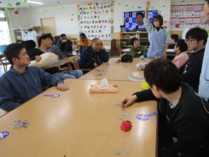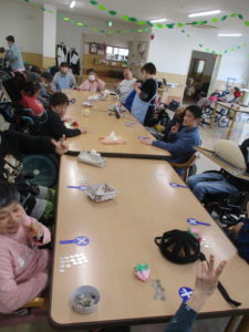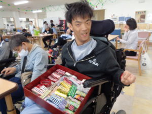 今日は、職員さんのご家族が作ってくれたアームバンドが景品だよ!!
