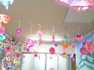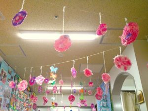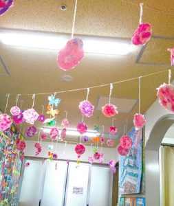 お花紙をちぎったり