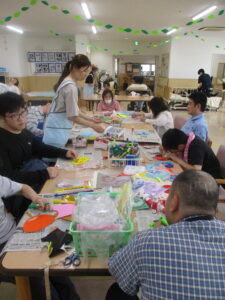 Masa夢 玄関飾り ~夏~ 2025年5月28日 2025年5月30日 Masa夢 玄関飾りをみんなで作りました~(*’▽’) テーマは夏です!! かわいい、うちわが沢山できました!! 作品の前で、はい!ポーズ!
