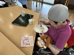 溶けたアイスクリームを上手に食べてたね(;^ω^)