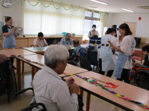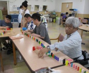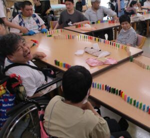 Masa夢 ドミノ大会!! 2025年8月22日 Masa夢 今日はドミノをしました~! キャー!ドキドキ! 慎重に・・・ 袖口触らない??? みんな真剣! 随分長くなってきた! 全部つながって! スタート!!! とっても盛り上がりました!