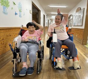 ピンクレディー見~つけた! 2025年8月27日 夢の家 同じピンクの服! 同じグレーのズボン! ひょっとしてピンクレディーでは??? ノリの良いお二人は 「UFO🎵」 ってやってくれました😄 今朝の一コマでした