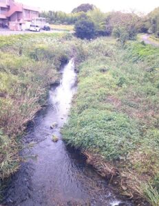 橋の上から小川を見たり