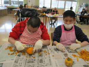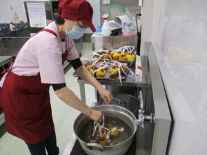 みんな、もくもくと皮むきがんばったね!!
