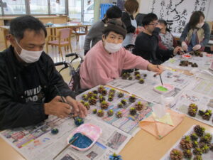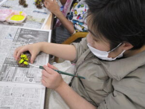 Masa夢 松ぼっくり工作 2026年1月16日 Masa夢 松ぼっくりに色をつけていきます! お花みたいに、なるね~(#^.^#) どんどん、塗っていくよ!! かわいい飾りの完成!! ナイスアイディアですね~♪