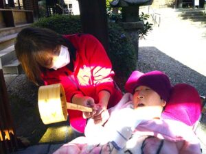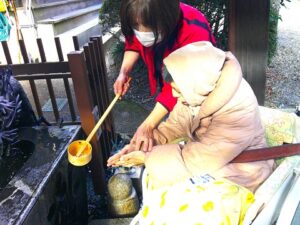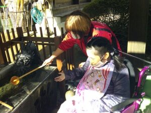 夢の家デイサービス 内々神社初詣② 2026年1月27日 夢の家 デイサービス 日差しがポカポカで いいお天気🌞 今日も内々神社へ初詣に 出掛けました🚐 順番にお清め 上手だね😚 お賽銭を入れたら 上手に鈴を鳴らせるかな? みんなでお参り🙏 今年も楽しく過ごせますように✨