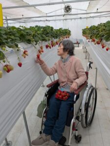 前回はあまり食べられなかった方も、今回は自分でいちごを摘むところから楽しむことができ、満足そうな様子でした。