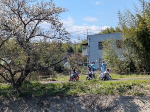 橋の向こうでお花見してた!
